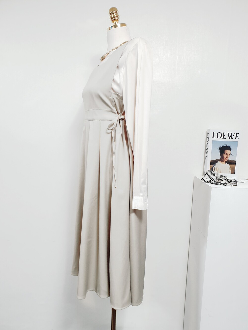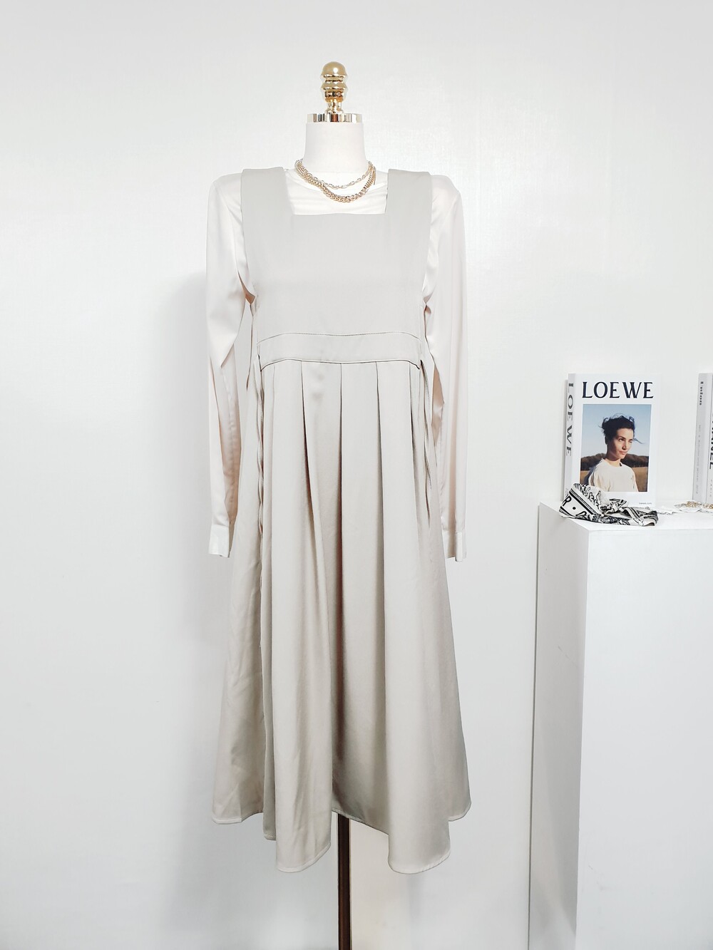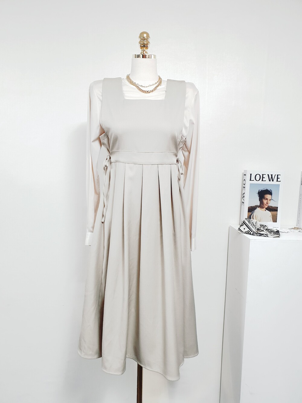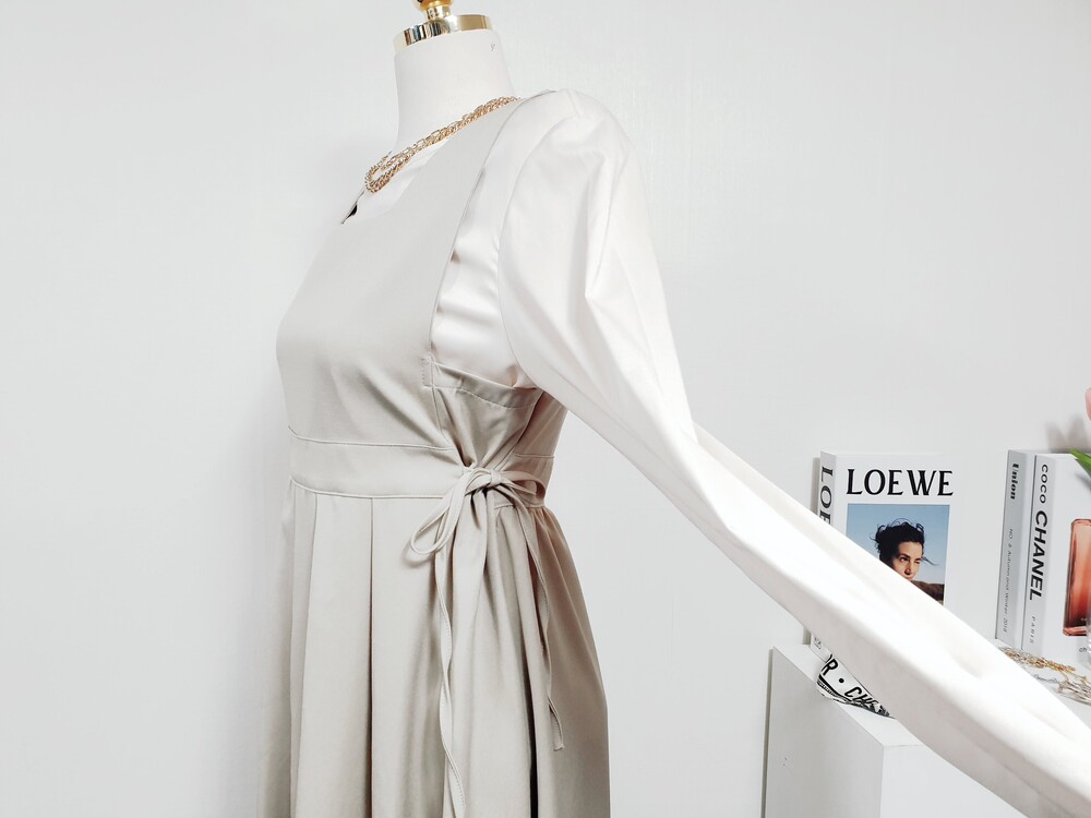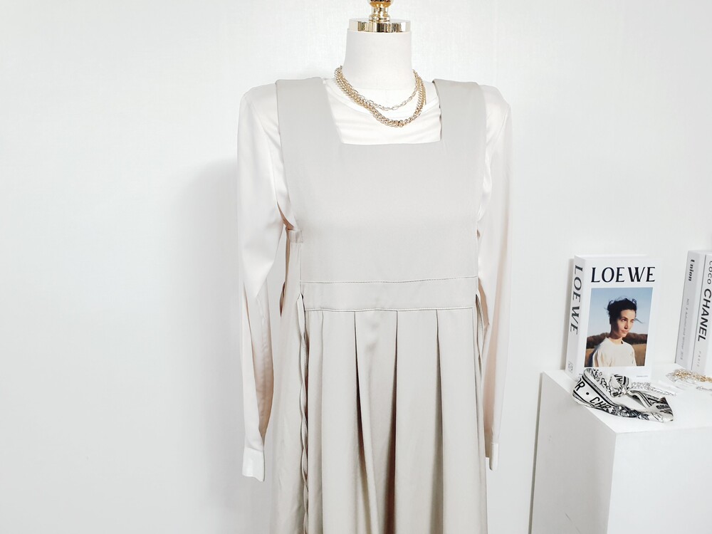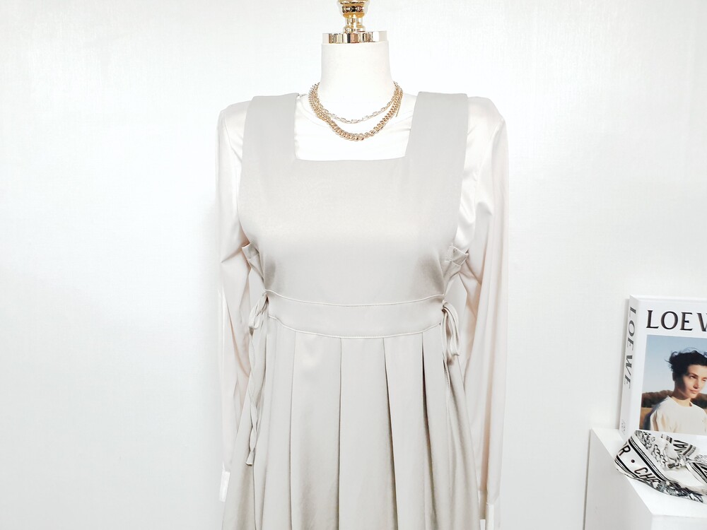▌비비에 골드베이지 뷔스티에 원피스 + 블라우스 set