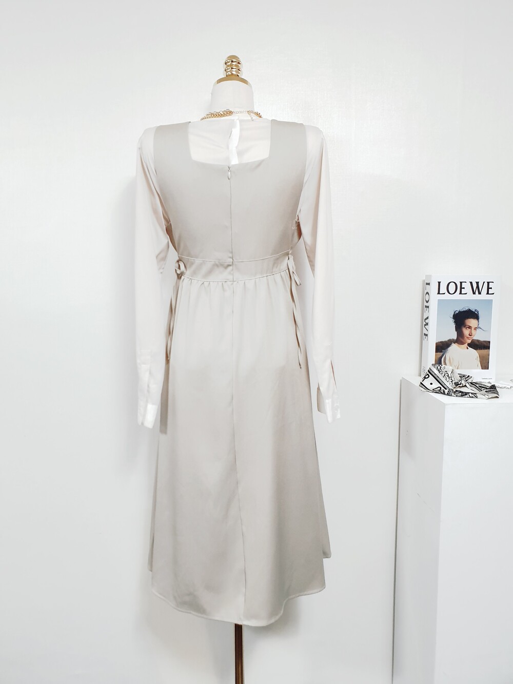 【 Free 】골드베이지 뷔스티에 원피스 + 블라우스 set