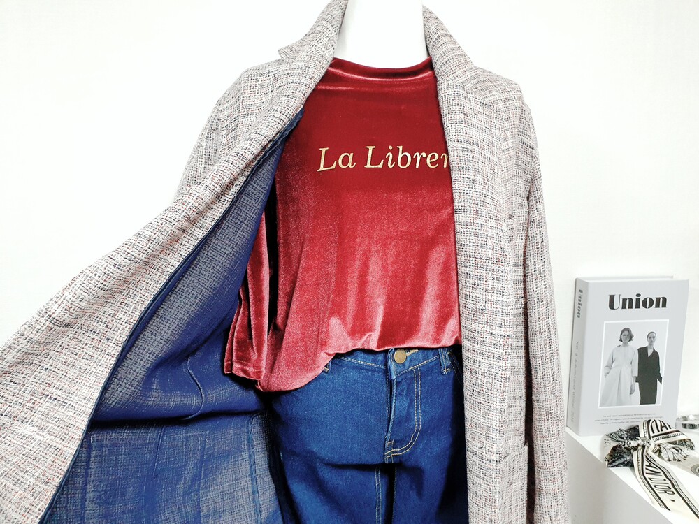 ✔ 블루+레드+화이트가 가미된 트위드소재