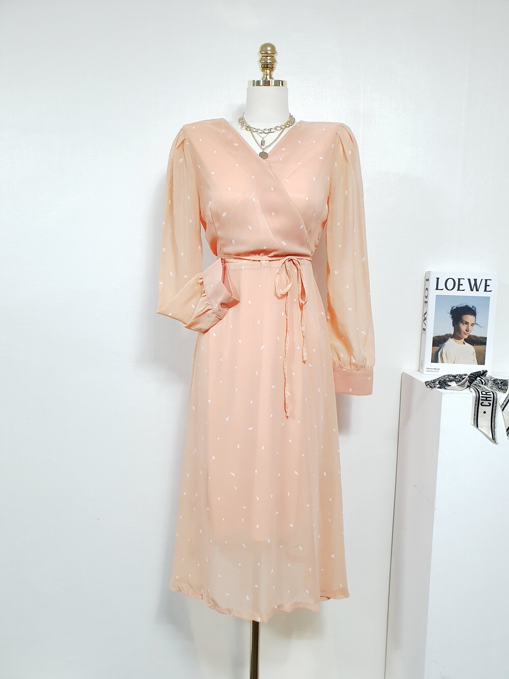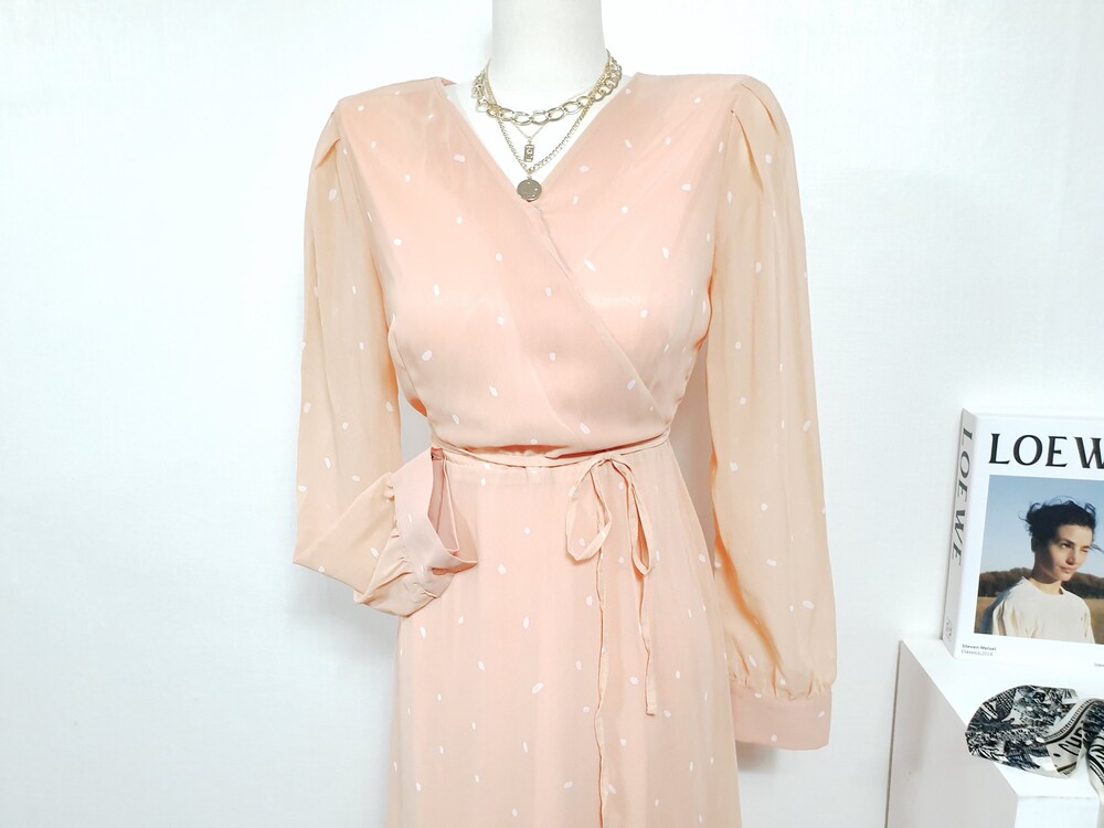 ▌브라이트 리빙코랄 쉬폰롱원피스