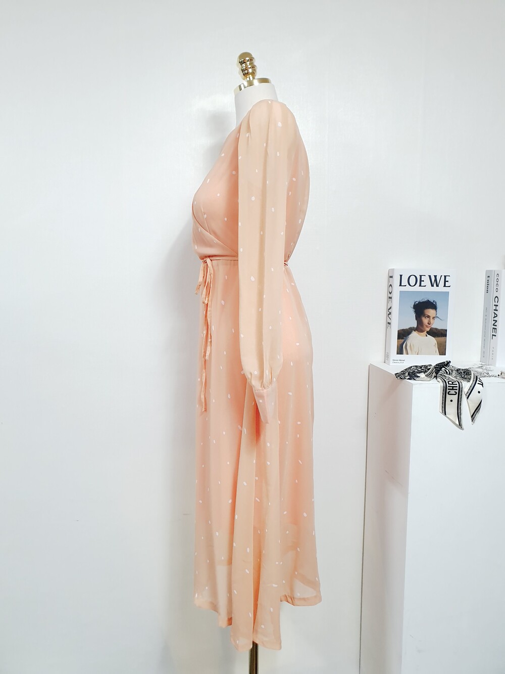 【 Free 】브라이트 리빙코랄 쉬폰롱원피스