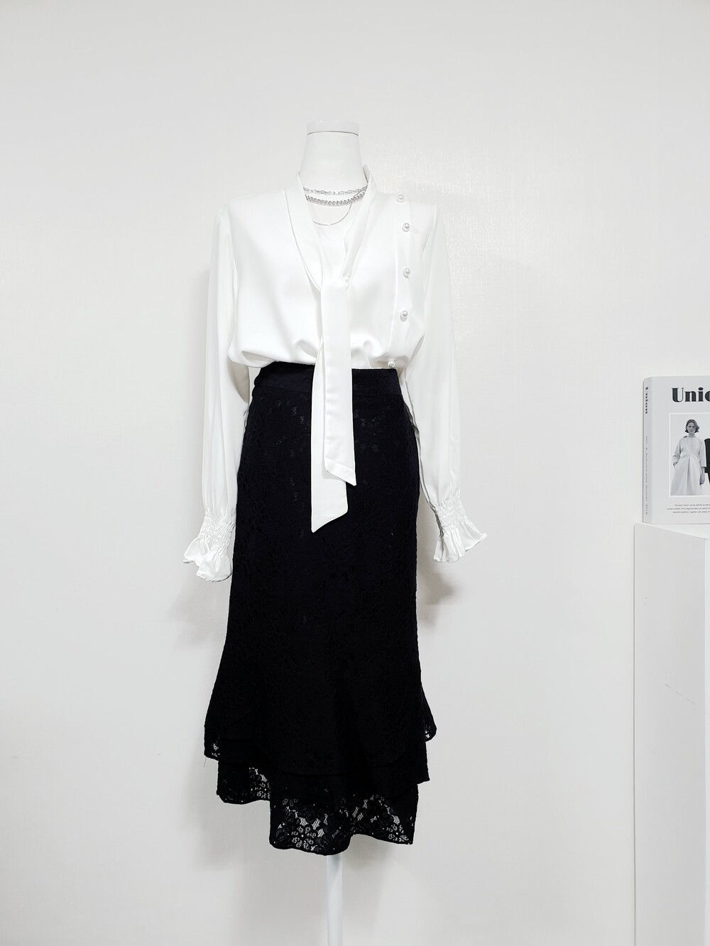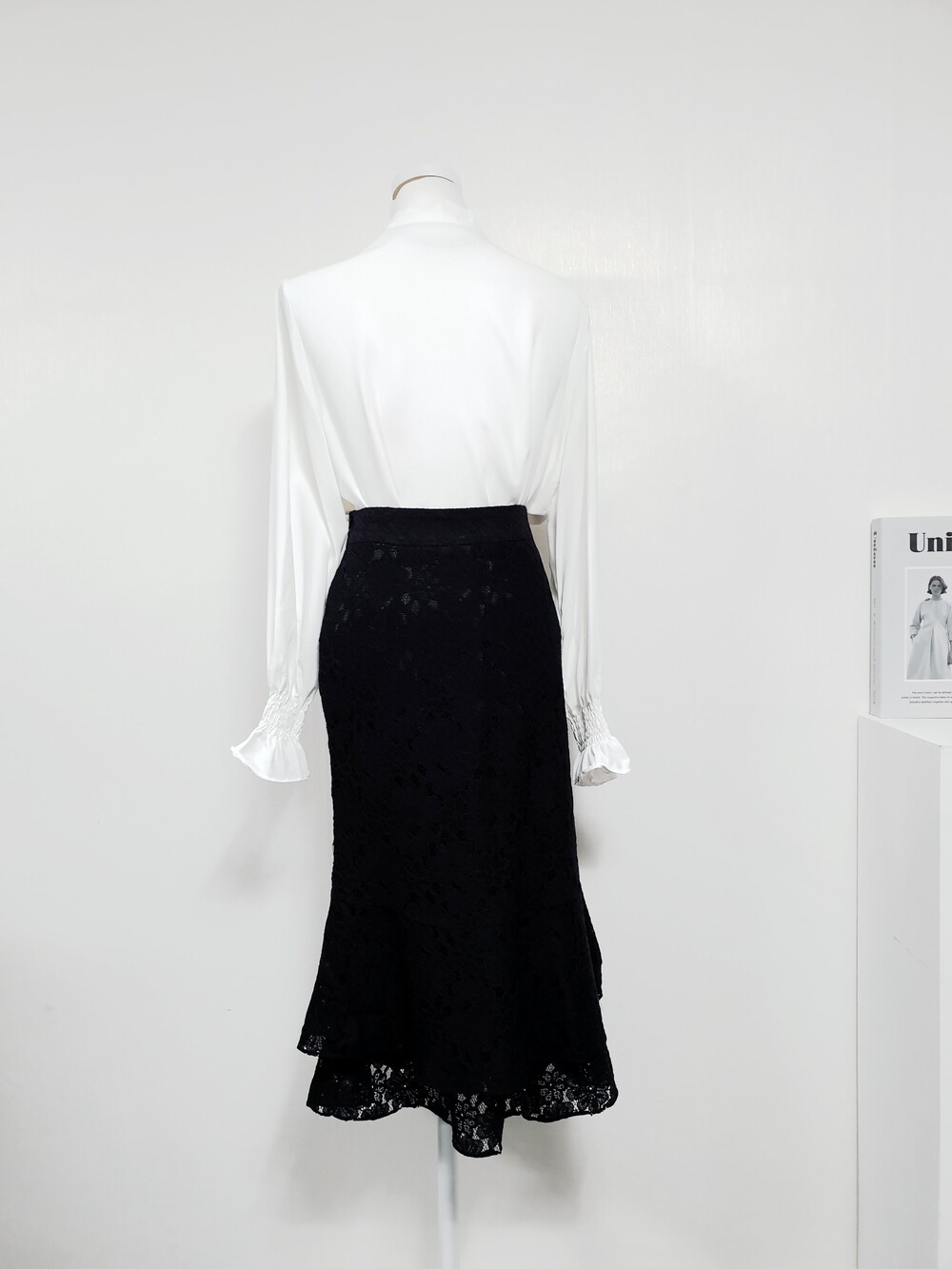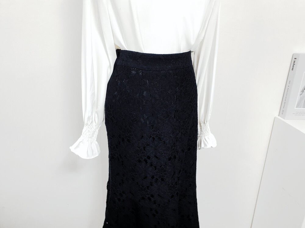 ▌에블린 그레이스 블랙 레이스 머메이드 미디롱 스커트