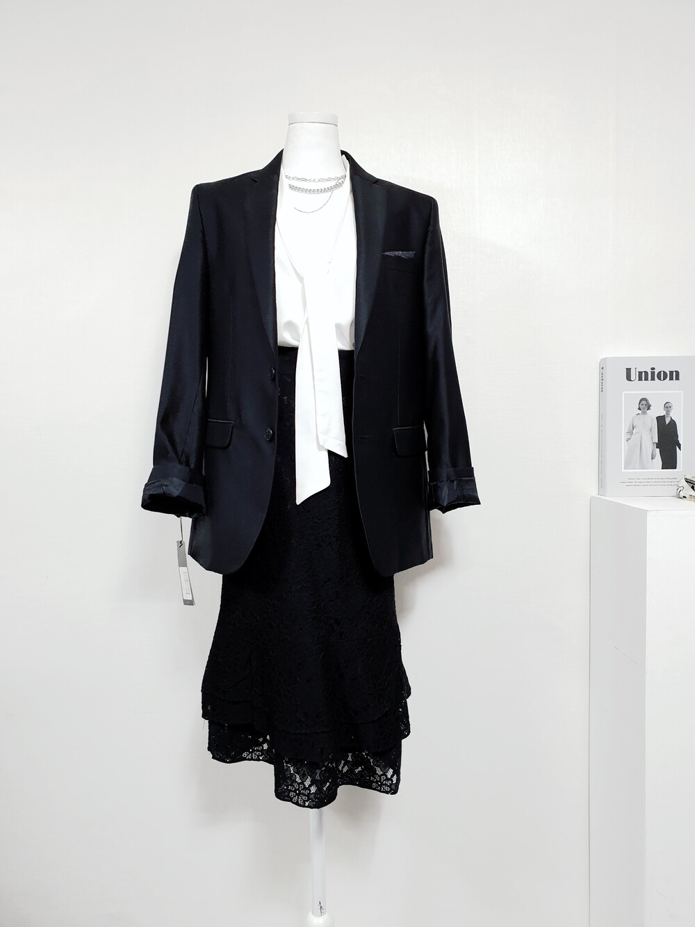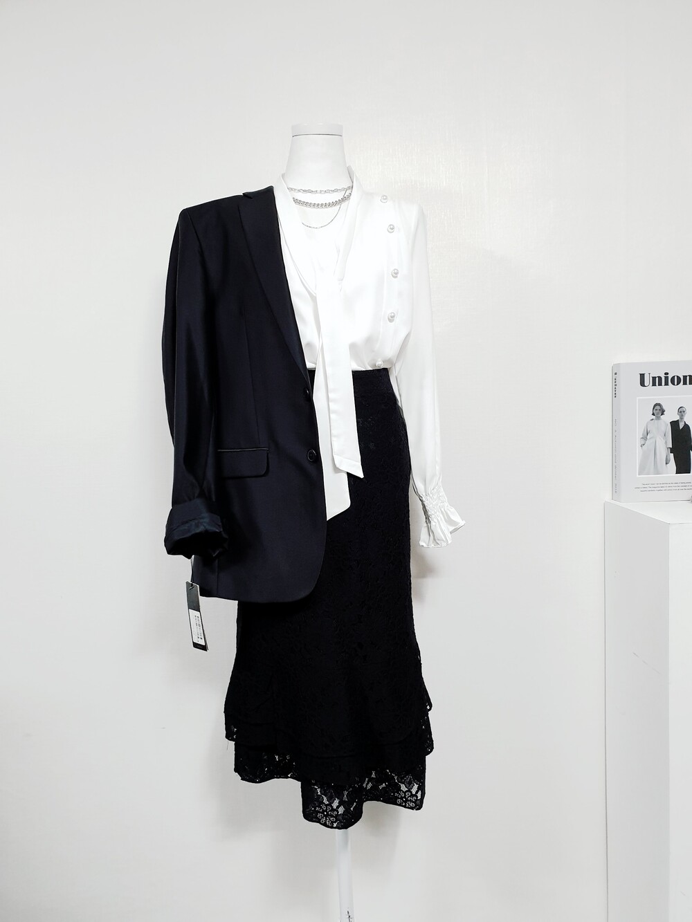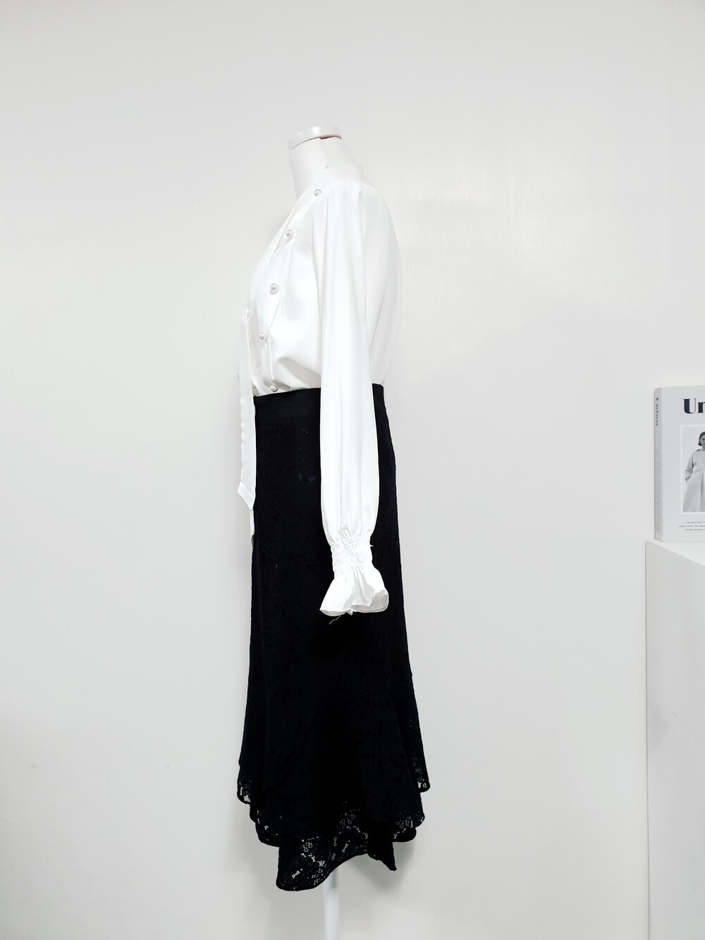 ▌에블린 그레이스 블랙 레이스 머메이드 미디롱 스커트