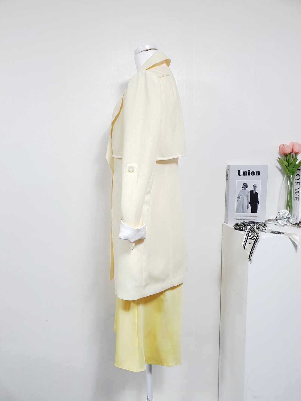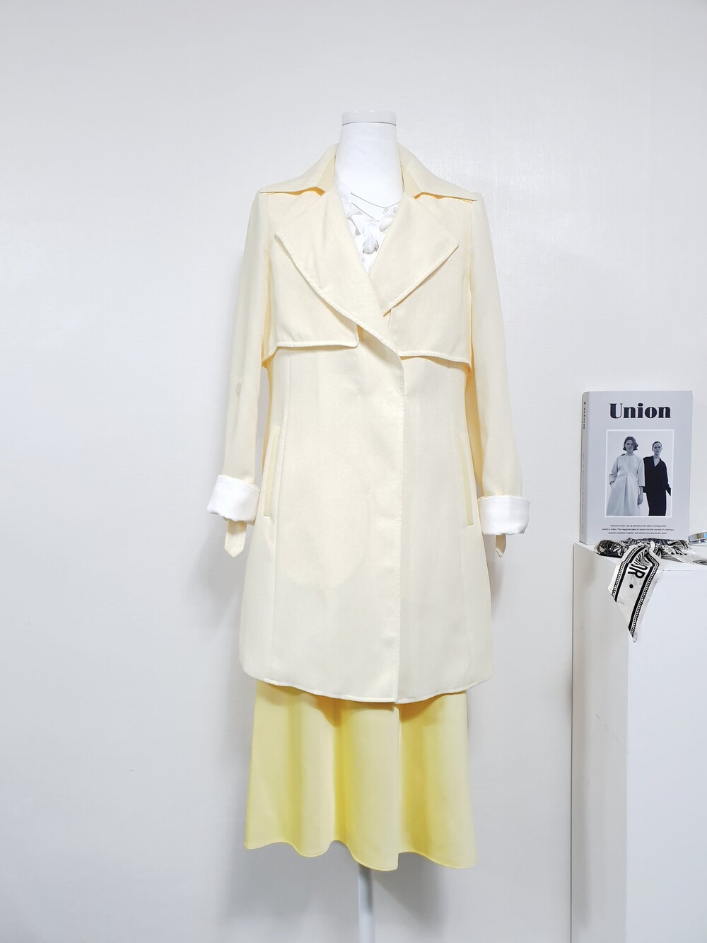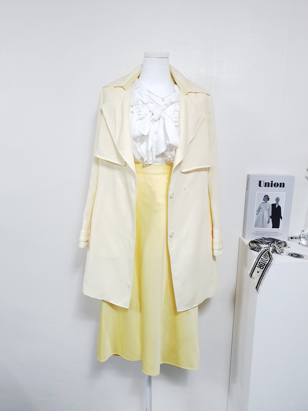 블라썸 파스텔 옐로우 트렌치코트