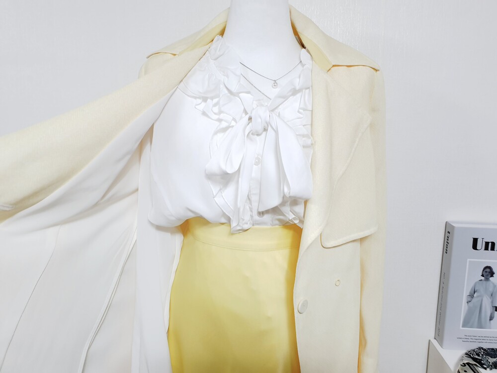 ▌블라썸 파스텔 옐로우 트렌치코트