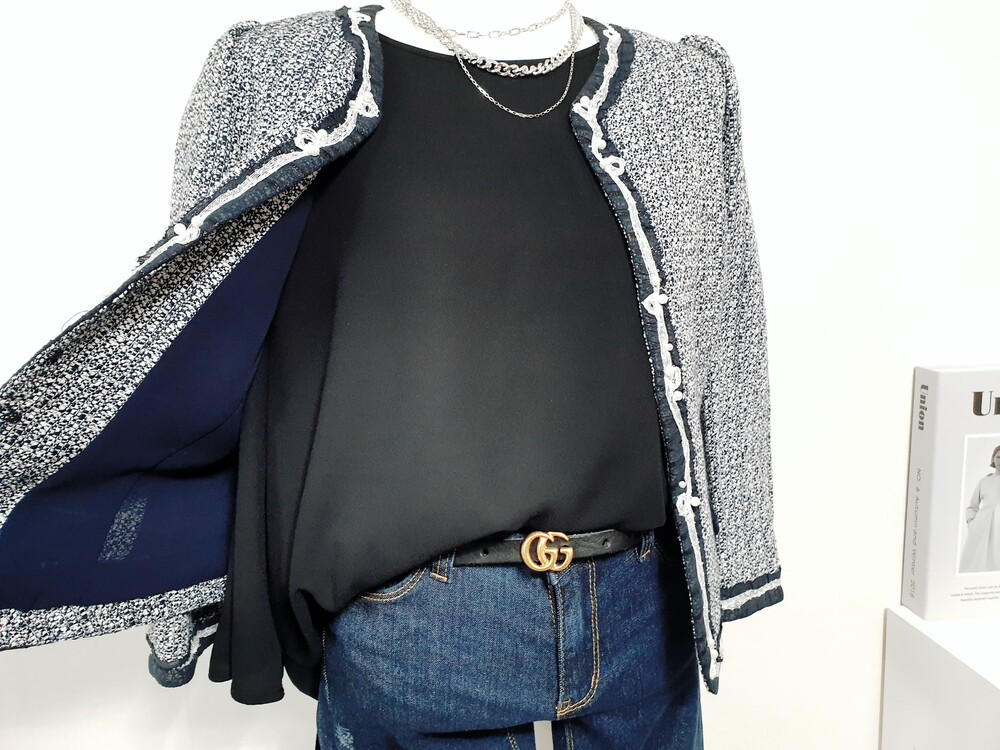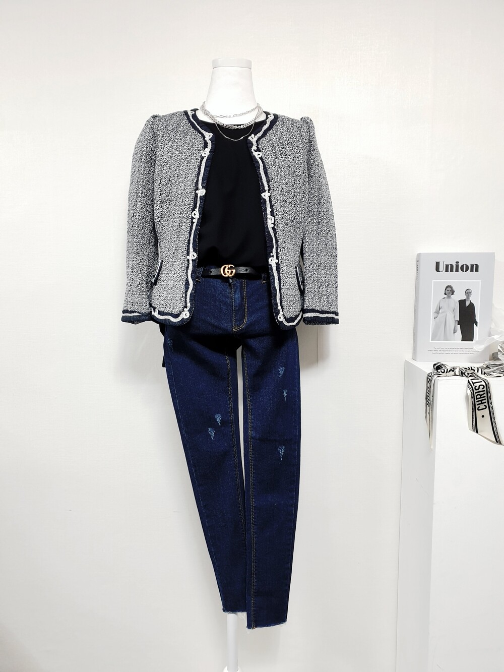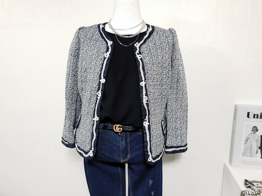 ✔ 원피스와 착용하기도 좋고 청바지에 걸치기도 좋은 트위드 :)