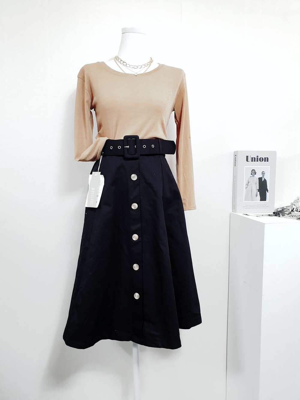 ✔ 탄탄한 트렌치 원단의 스커트에 벨트 세트 :)