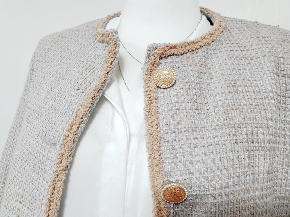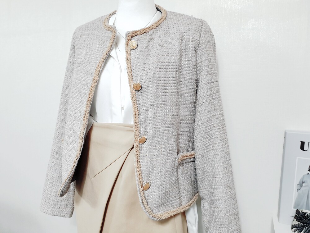 ▌로랑 블루베이지 트위드 자켓