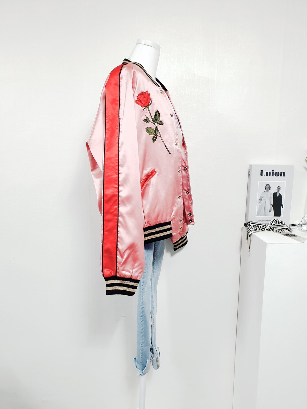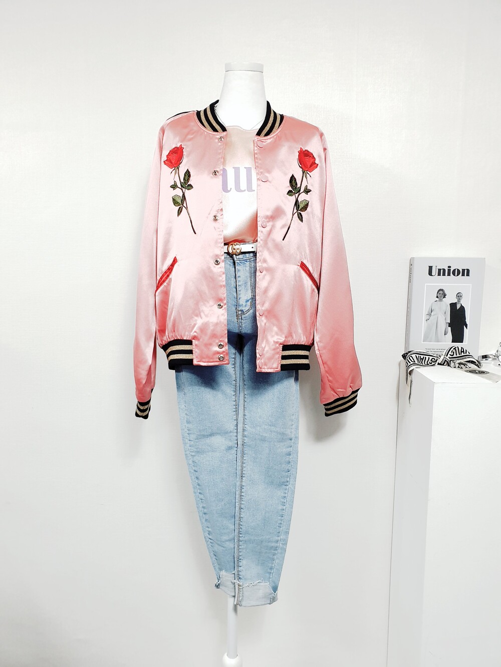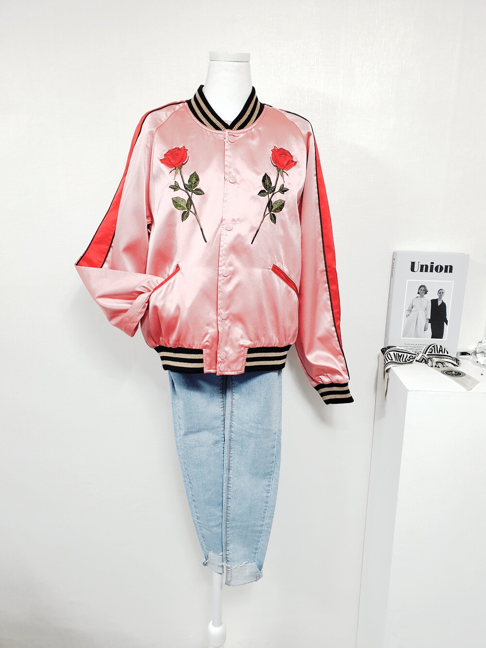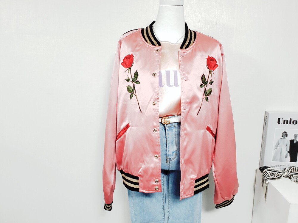 【 Free 】VEI-8 베이에잇 발렌 프리미엄 자수 실키 블루종 점퍼