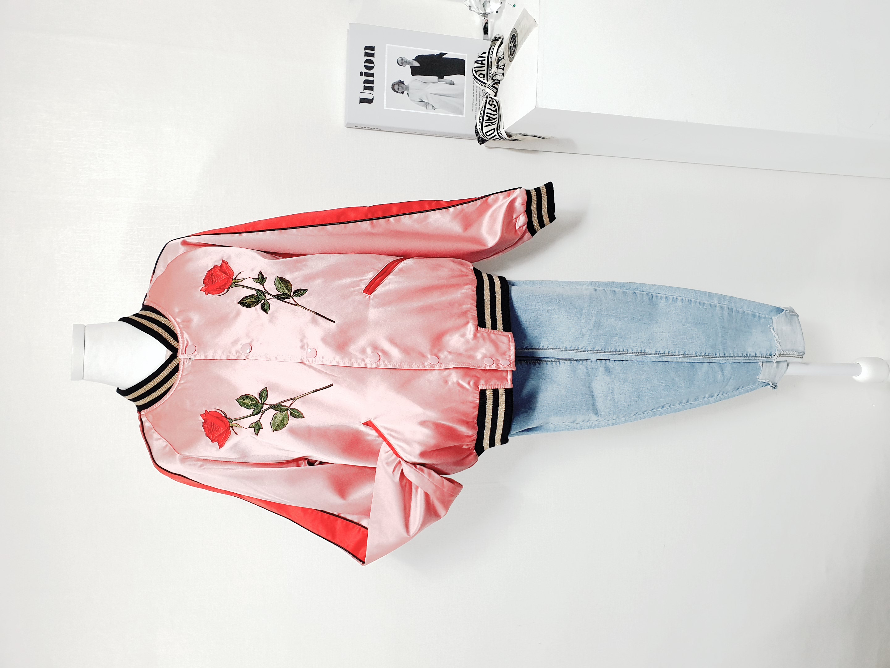 ▌VEI-8 베이에잇 발렌 프리미엄 자수 실키 블루종 점퍼
