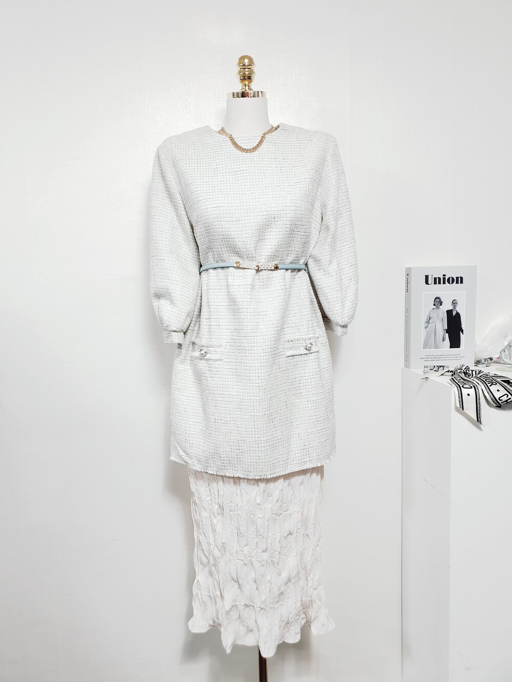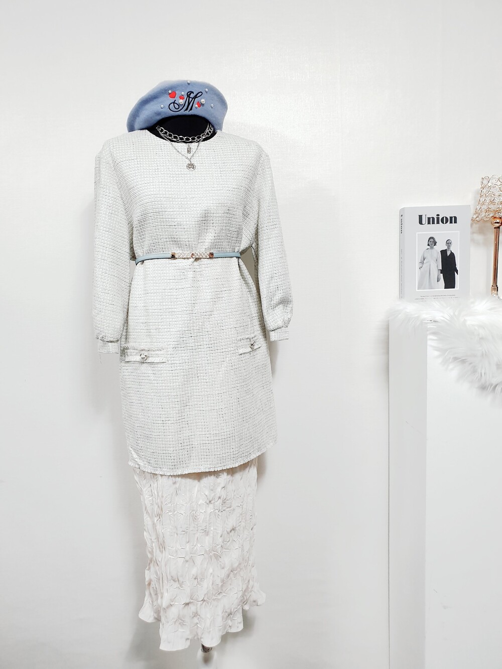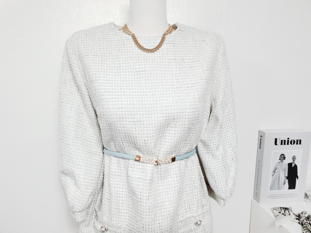 ▌BLOOM 블룸 트위드 러브 크림블루 롱원피스