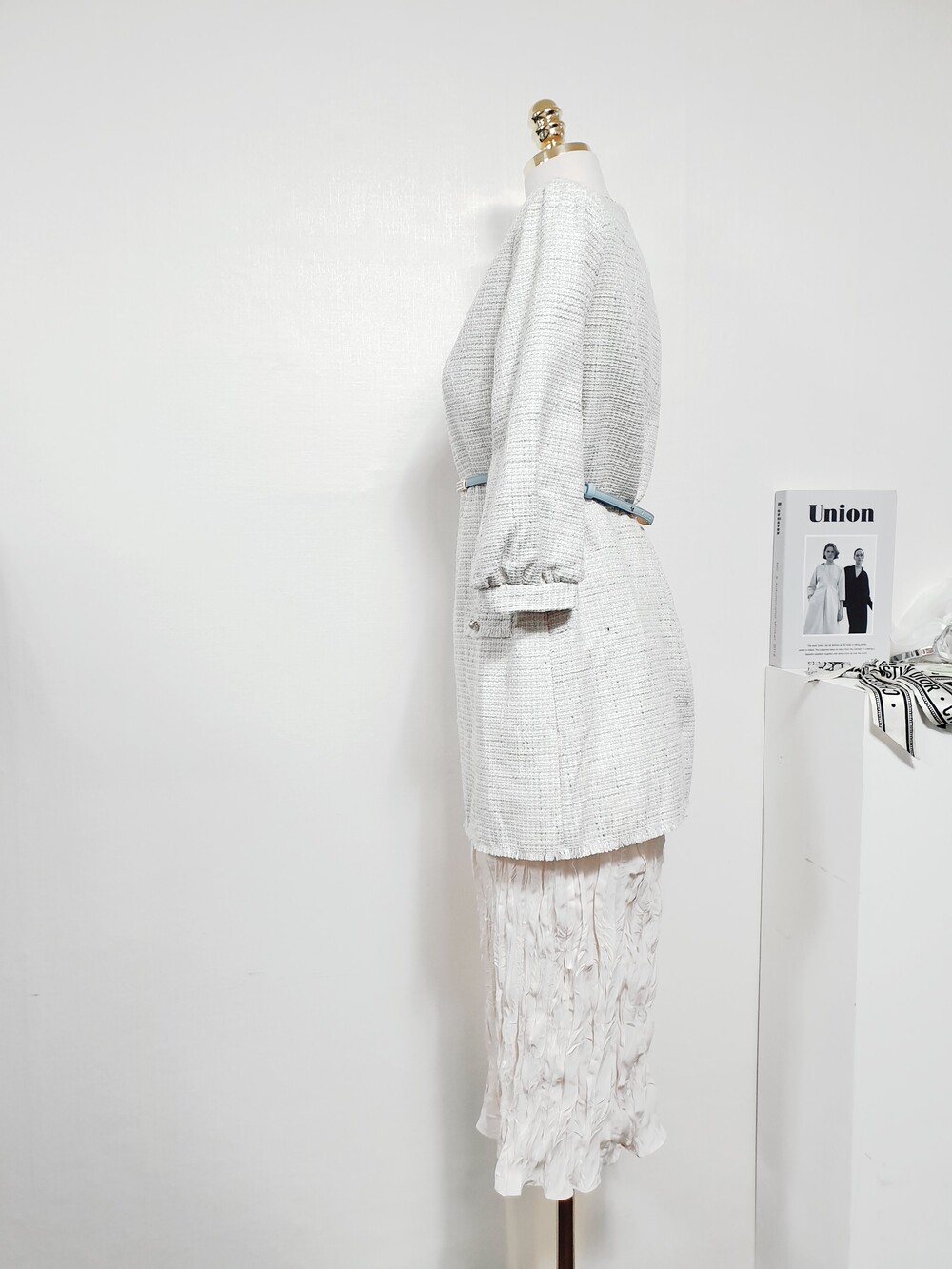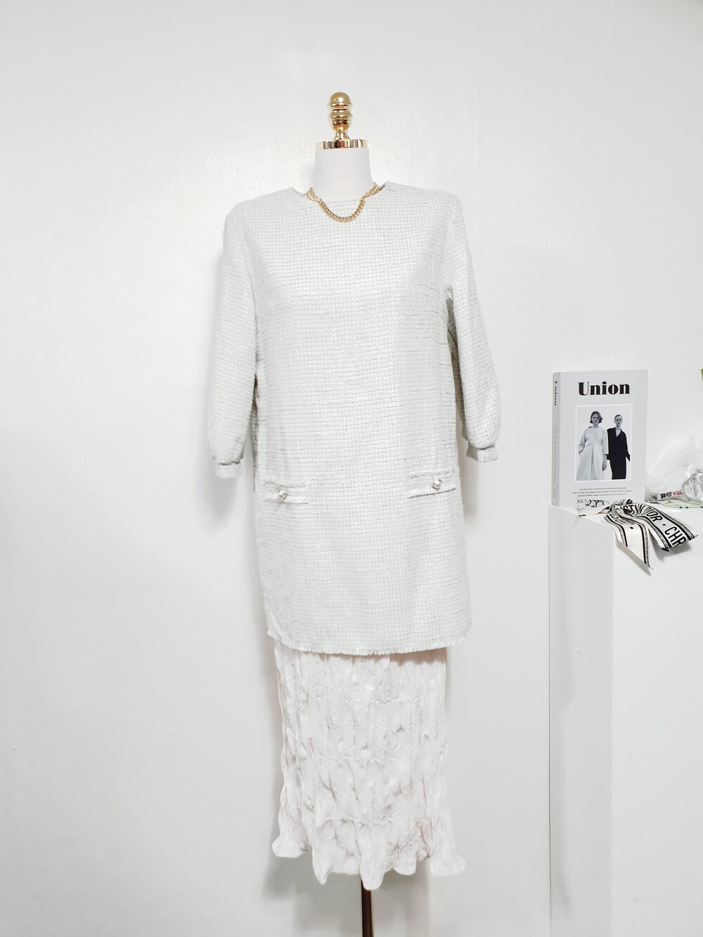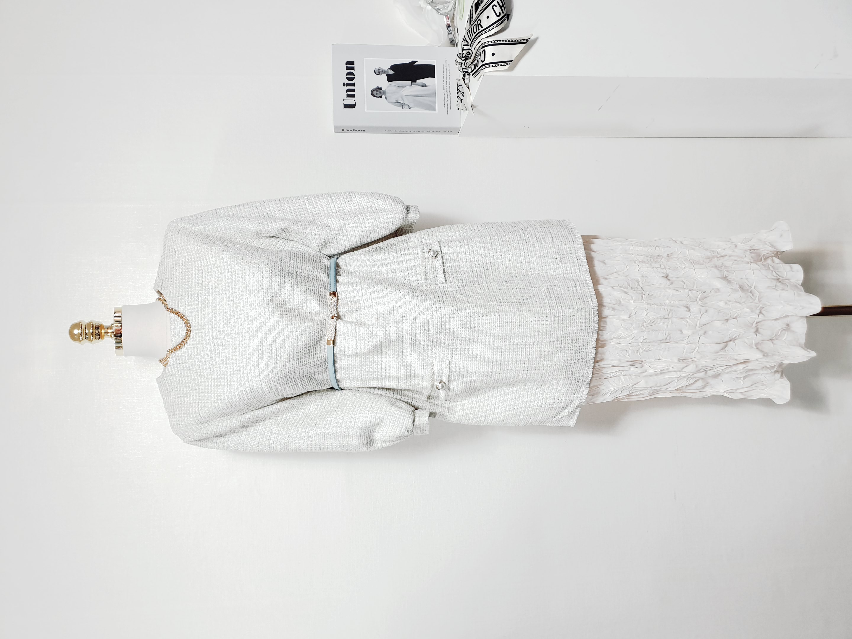 ✔ 윗쪽은 트위드, 아랫쪽은 구김원단의 안감이 레이어드
