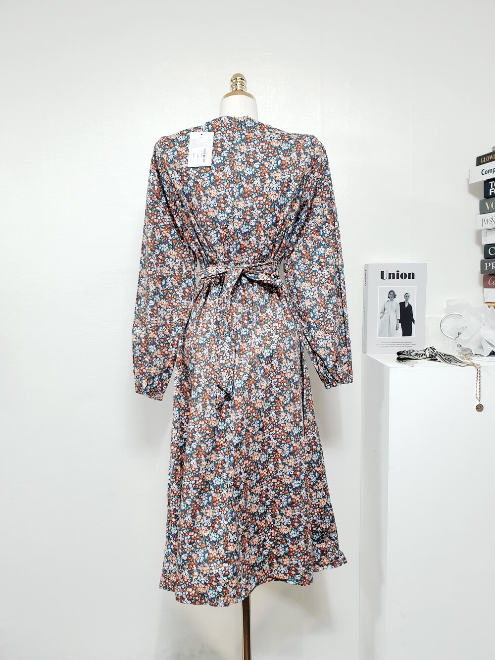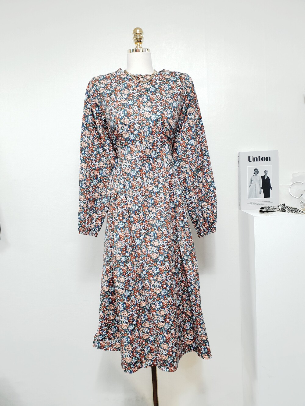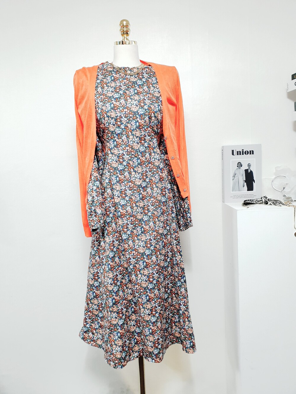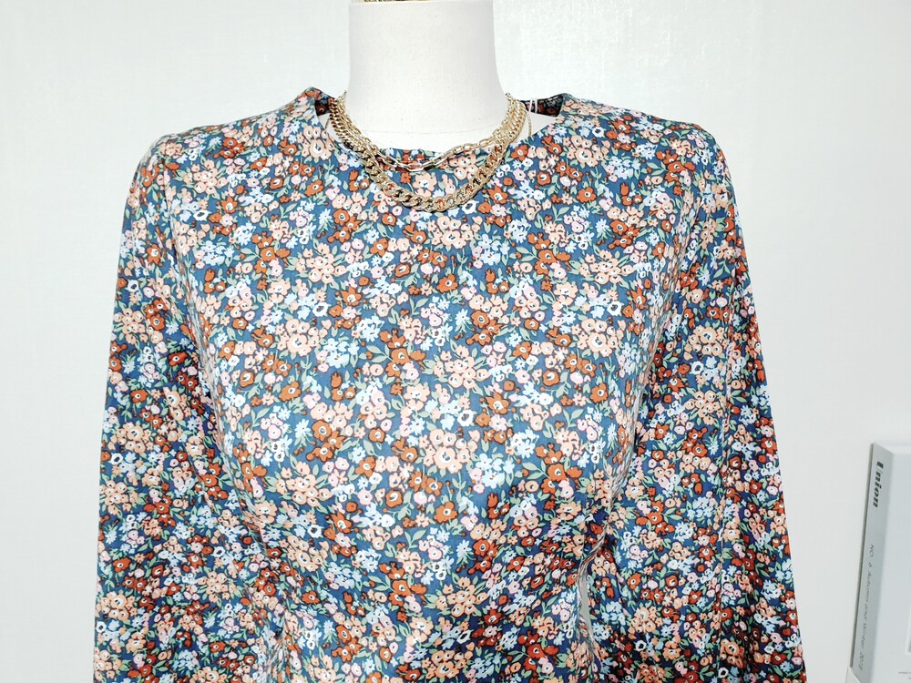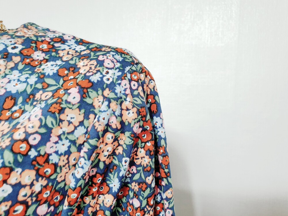 ✔ 블루,오렌지,브라운 등의 컬러가 믹싱된 플라워 원피스