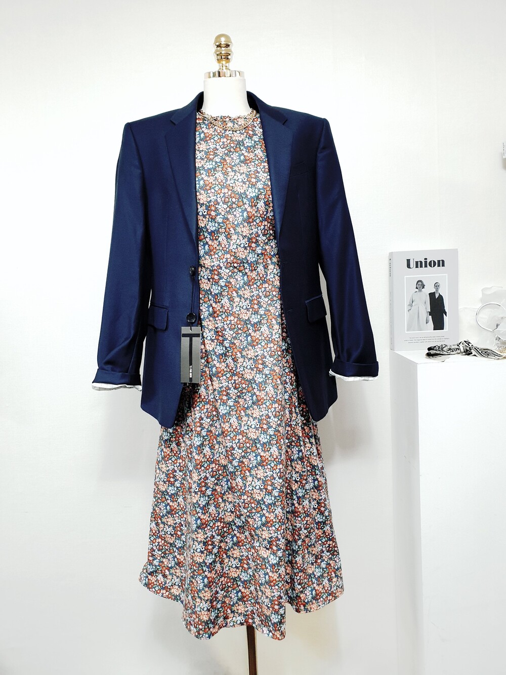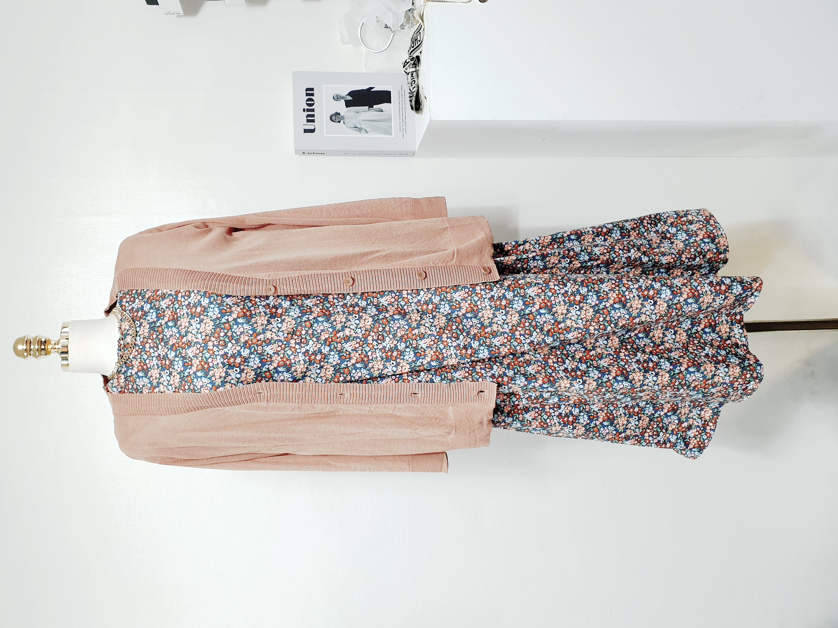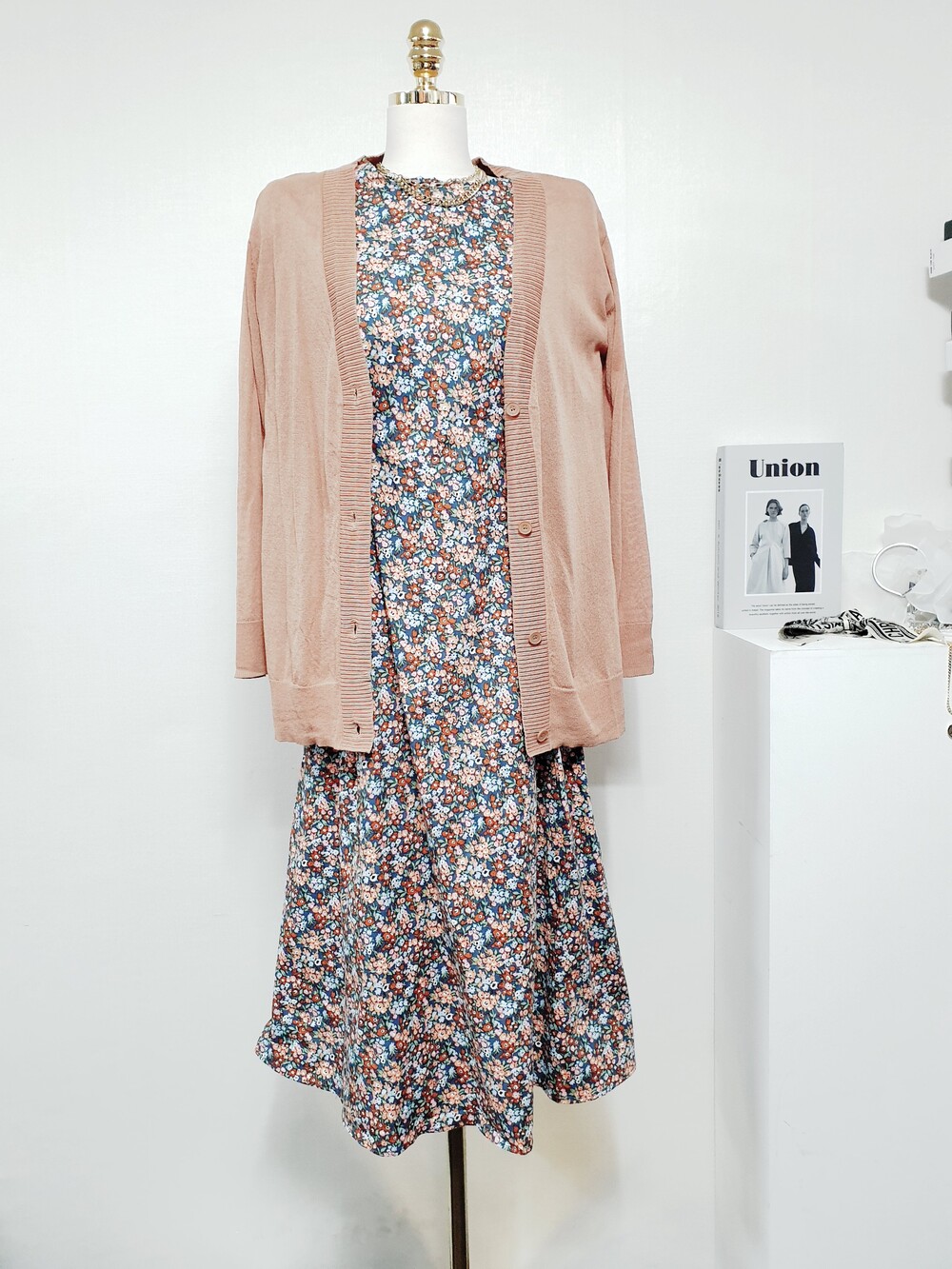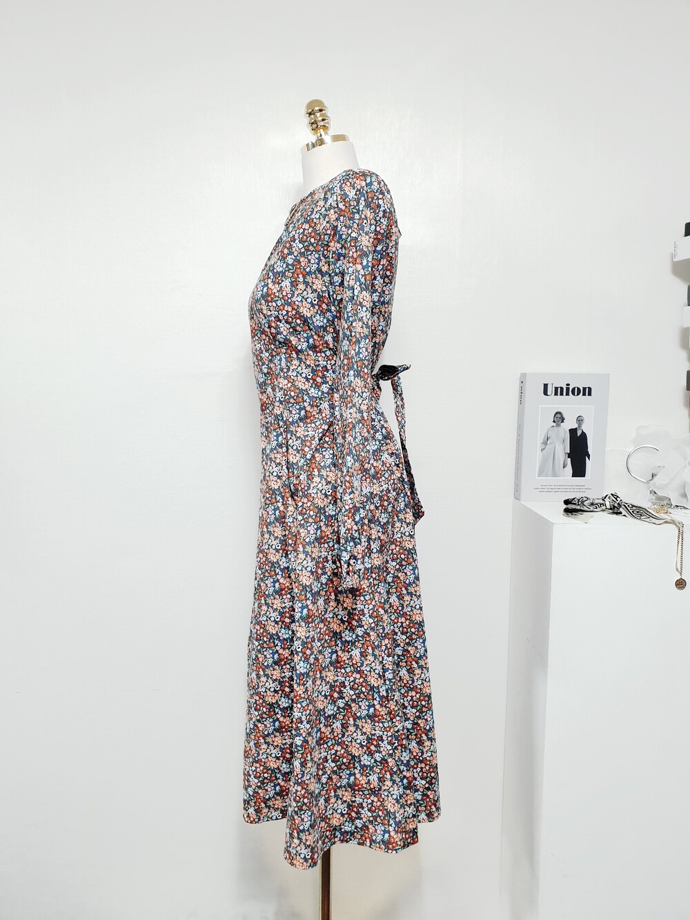 ✔ 블루,오렌지,브라운 등의 컬러가 믹싱된 플라워 원피스