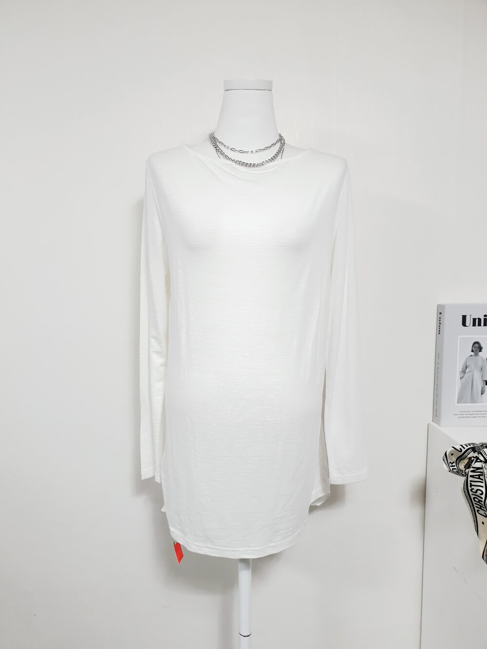 ▌NY212 텐셀 화이트 롱티셔츠