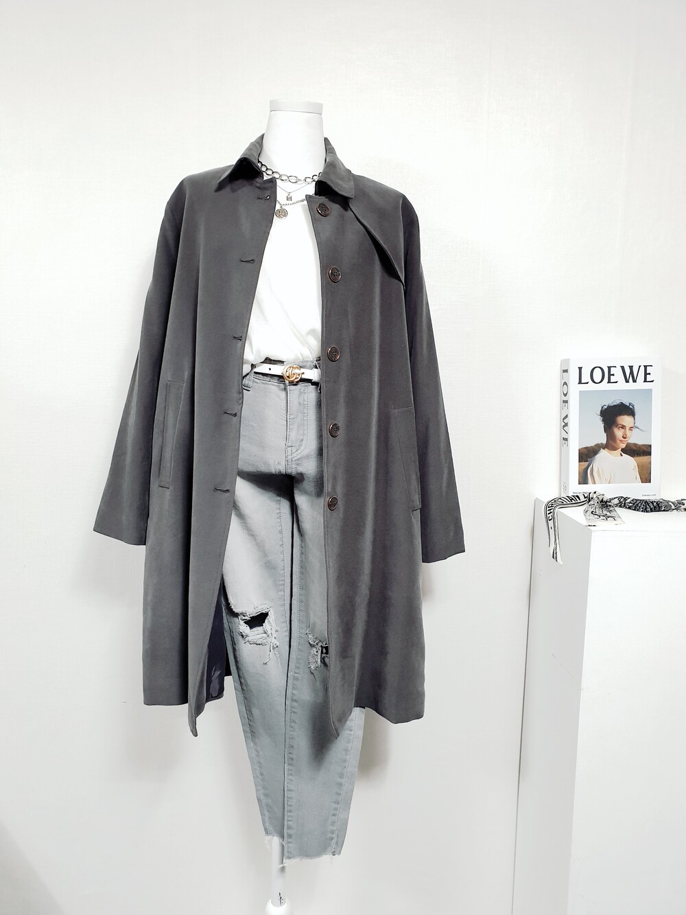 ▌모먼트 샤크 그레이 트렌치 코트